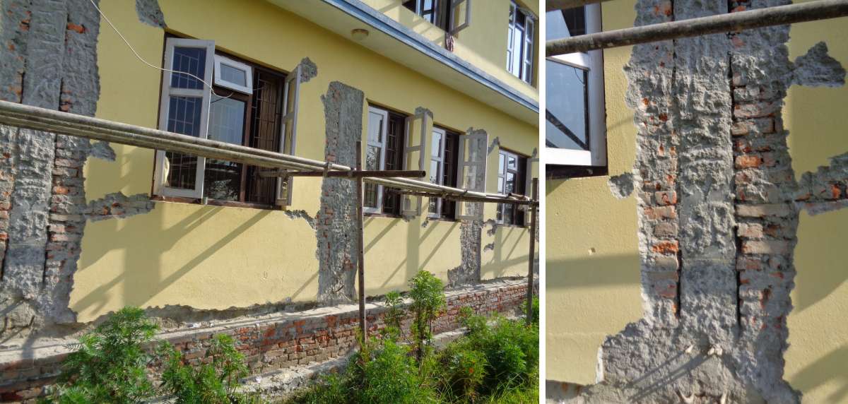 Am Hauptgebäude sind nun schon Gerüste aufgebaut, um die Risse, die das Erdbeben verursacht hat, zu reparieren.