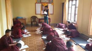 Eine Nonne, Ani Chodon, aus einem Kloster in Mussoorie (Indien) hat 1 Jahr lang buddhistische Philosophie unterrichtet. Sie wird nun nach den Prüfungen in ihr Kloster zurückkehren.