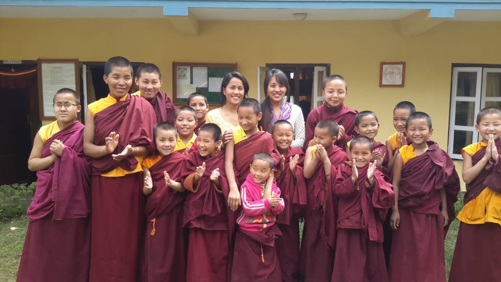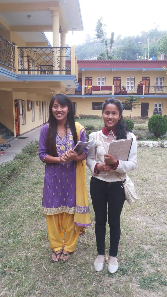 Wir sind beide 19 Jahre alt und studieren im NCTTM (Nepal College of Travel and Tourism Management) Kathmandu in Klasse 13. Bipana wohnt in Kopan, 20 Minuten vom Kloster entfernt, Puja wohnt in Mulpani und braucht 90 Minuten, um das Kloster von zuhause aus zu erreichen. Es ist eine große Freude, die Nonnen zu unterrichten, sie sind so nett.