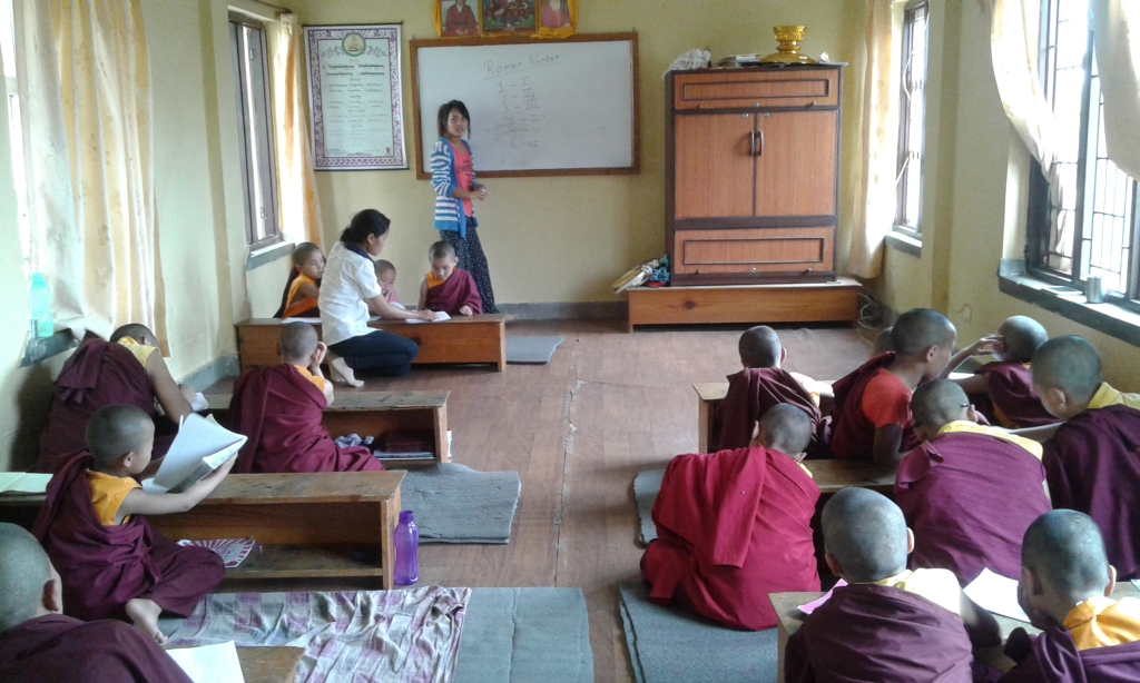 Wir sind sehr froh und bedanken uns bei den Spendern des BTF ganz besonders dafür, dass wir die Gelegenheit haben, hier im Kloster als Lehrkräfte zu dienen und so Erfahrungen sammeln zu können. Wir unterrichten jeden Tag insgesamt 3 Stunden an 5 Tagen in der Woche in 3 Klassen die Fächer Englisch, Nepali und Mathematik. In der Grundstufe sind es 26, in der 2. Stufe 10 und in der 3. Stufe 6 Schülerinnen. Wir bemühen uns, unser Allerbestes für die Ausbildung der Nonnen zu geben. Pro Monat erhalten wir 4500 Nepali Rupees. Vielen Dank.