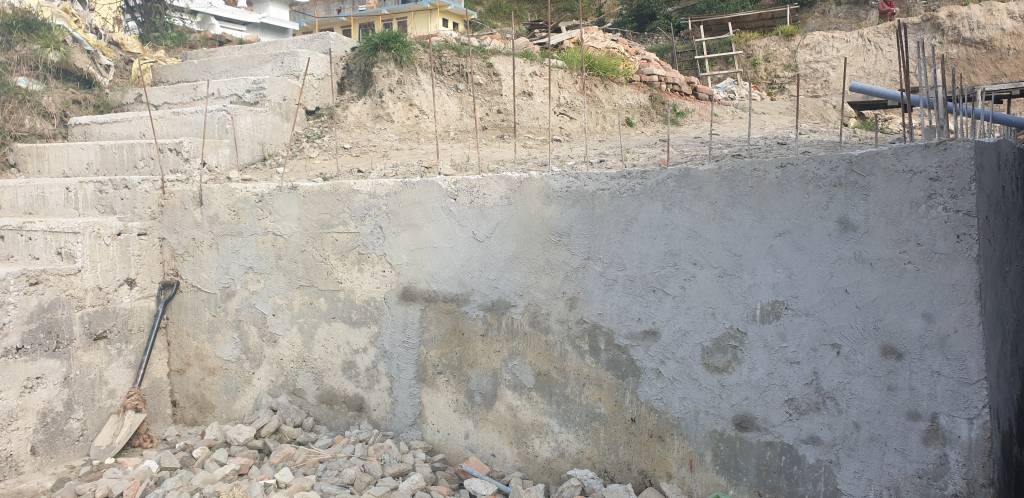 Inzwischen wurden vor der Rückseite und einer Seite die Stützmauern fertiggestellt und