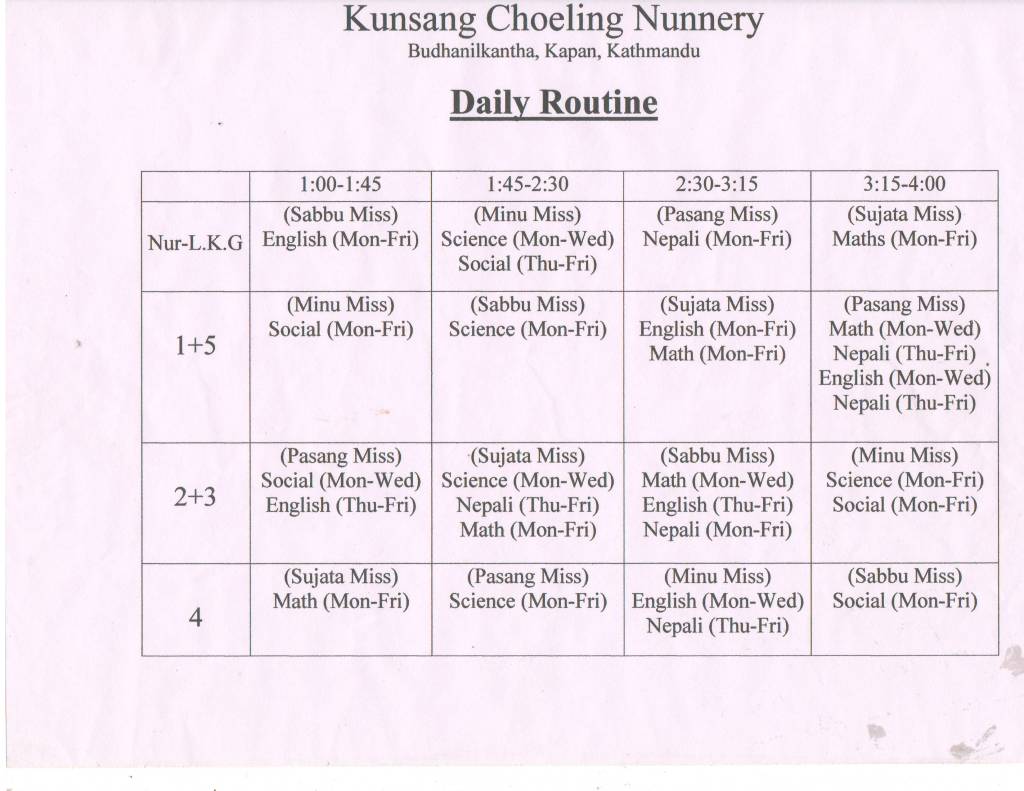 (es war der 25. November 2019) schicken: Frühstück, Zusammenkunft vor dem Tempel am Morgen (sind die Hände sauber?), Unterricht, Pausen, Mittagessen, Abendpuja