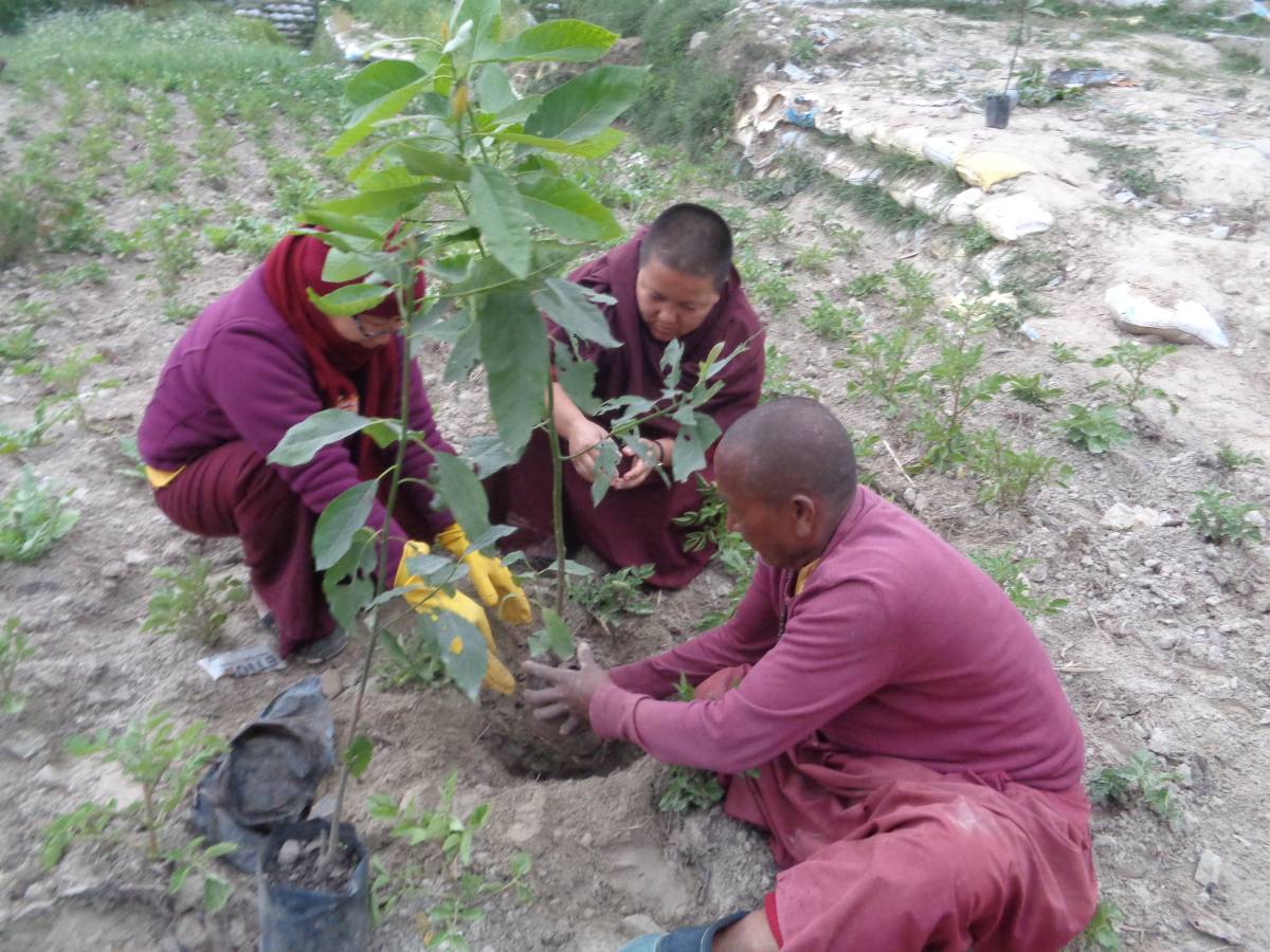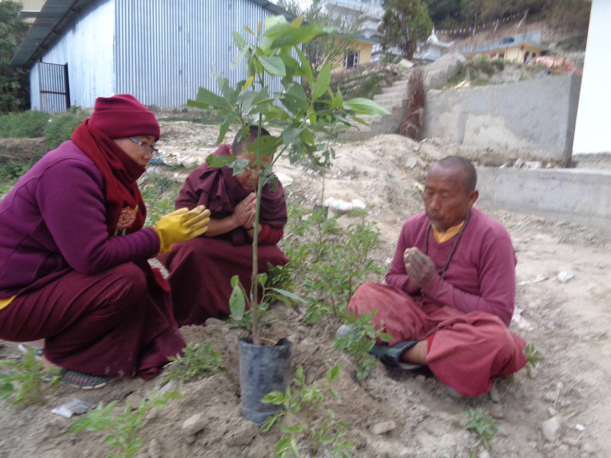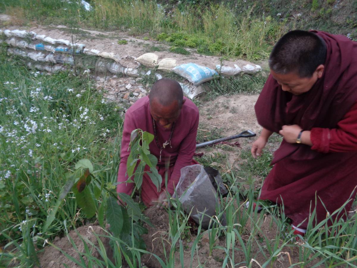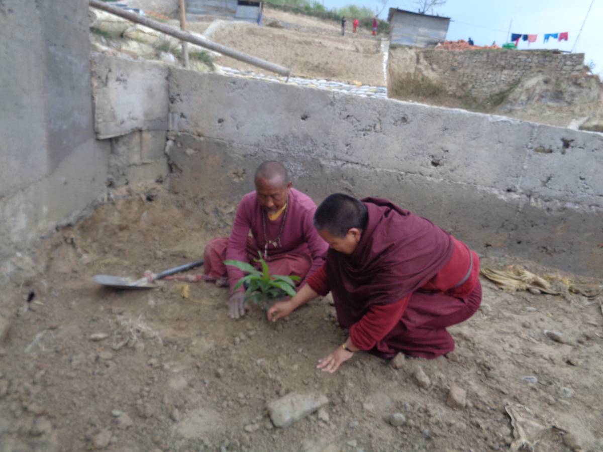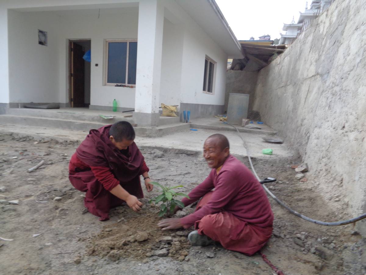 Sofort kam die Antwort von Khenpo la: I talk to lama la and he said it is very nice to planting trees around the guest house.