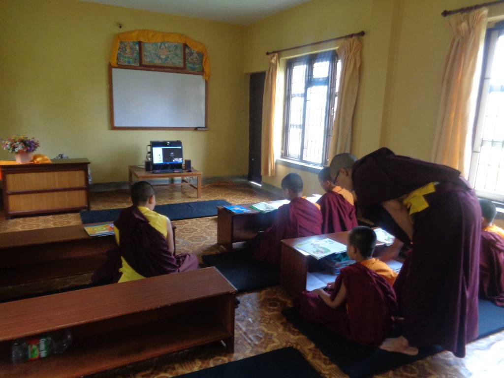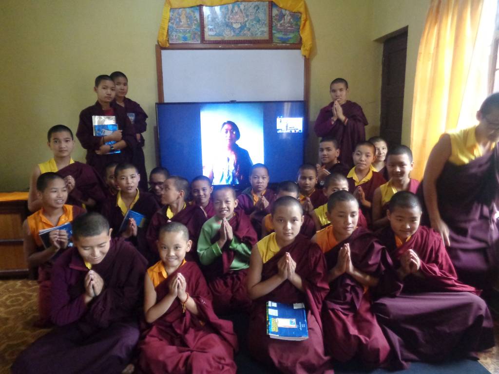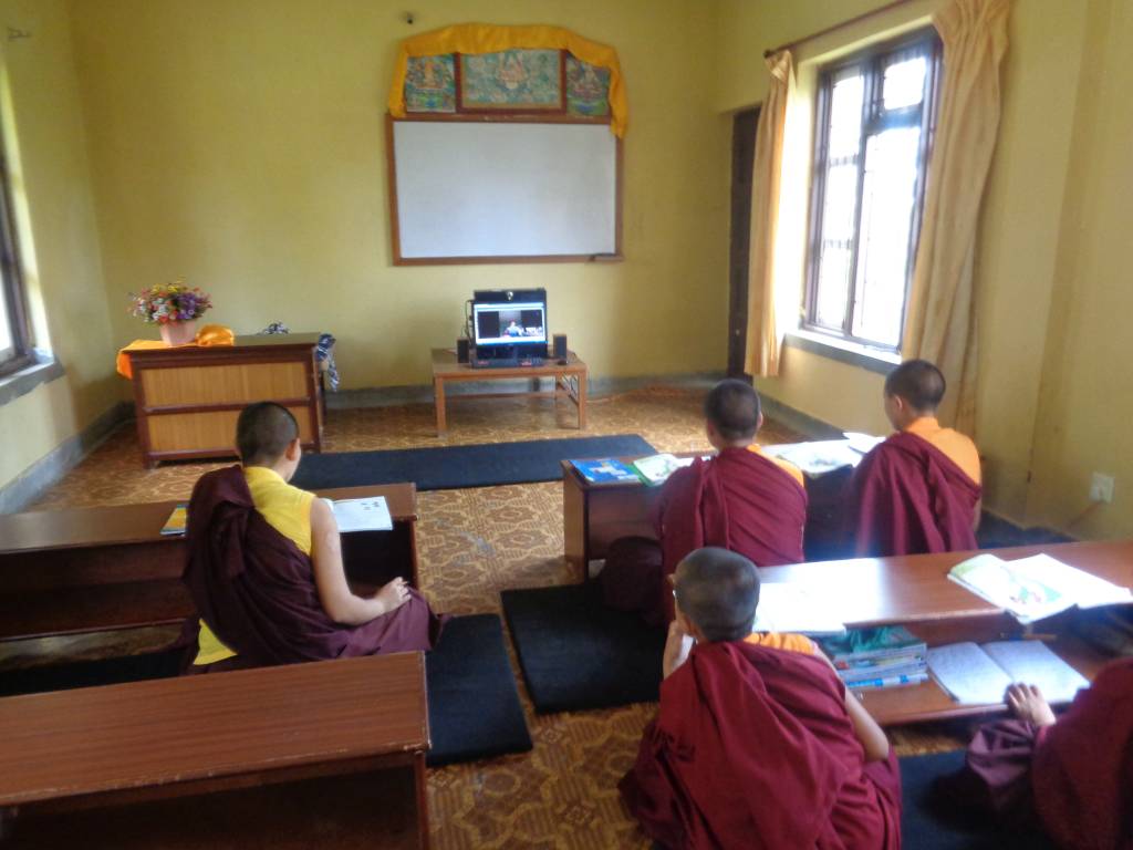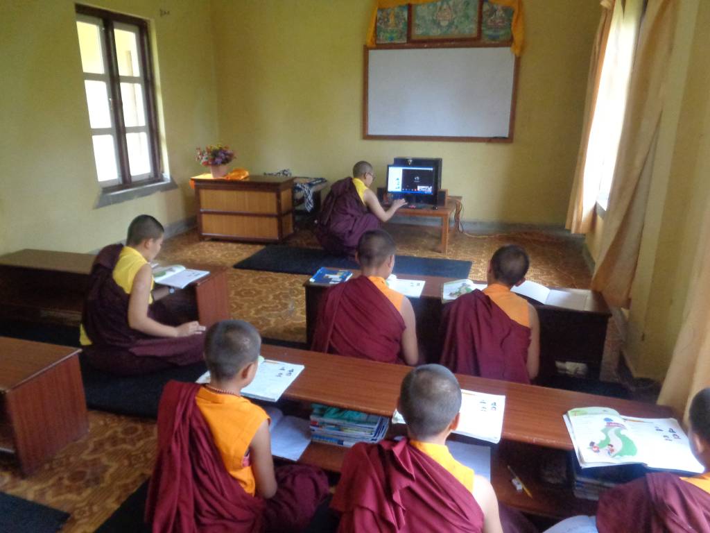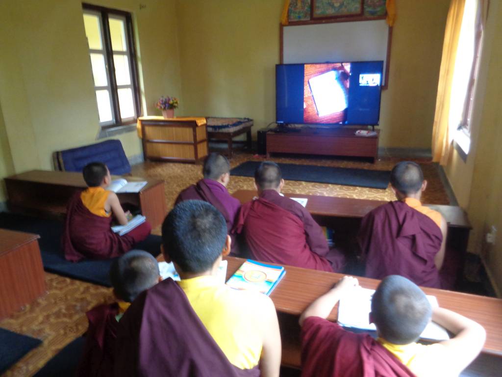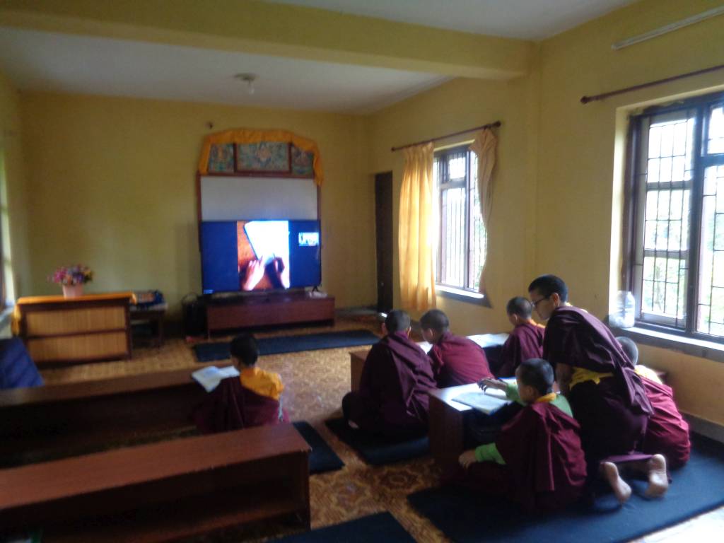 Nach dem landesweiten Lockdown in Nepal am 20. März machten wir uns viele Gedanken, wie wir KCN gezielt unterstützen könnten. Von Karma Chozom, der Leiterin der Kailash Bodhi School mit etwa 900 Schülern, erfuhren wir, dass sie sofort den Online-Unterricht eingeführt hat. Unser Vorschlag, zu überprüfen, ob das nicht auch eine Option für unser Kloster wäre, wurde sowohl von Lama Gondup und Khenpo als auch von den Lehrerinnen und Nonnen begeistert aufgenommen.