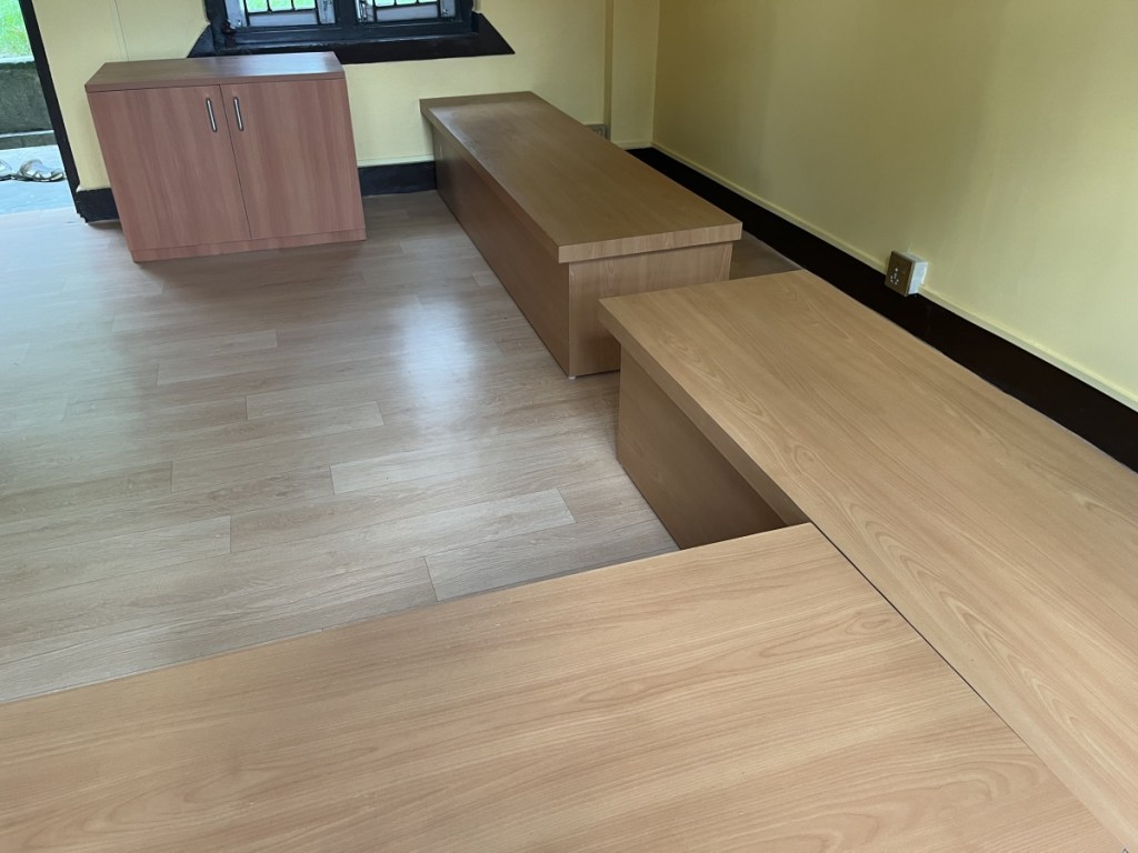 von der Umgestaltung und Renovierung eines Klassenzimmers in einen Computerraum, der seiner Vollendung entgegensieht. Die Technik ist schon bestellt,