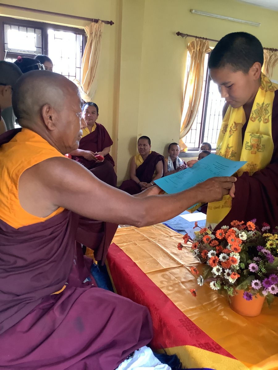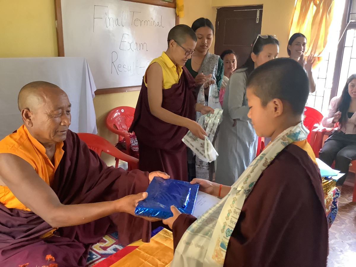 Nach den kurzen Ferien wurden in einer festlichen Feierstunde von Lama Gondup die Zeugnisse und Preise des vergangenen Schuljahres verteilt.