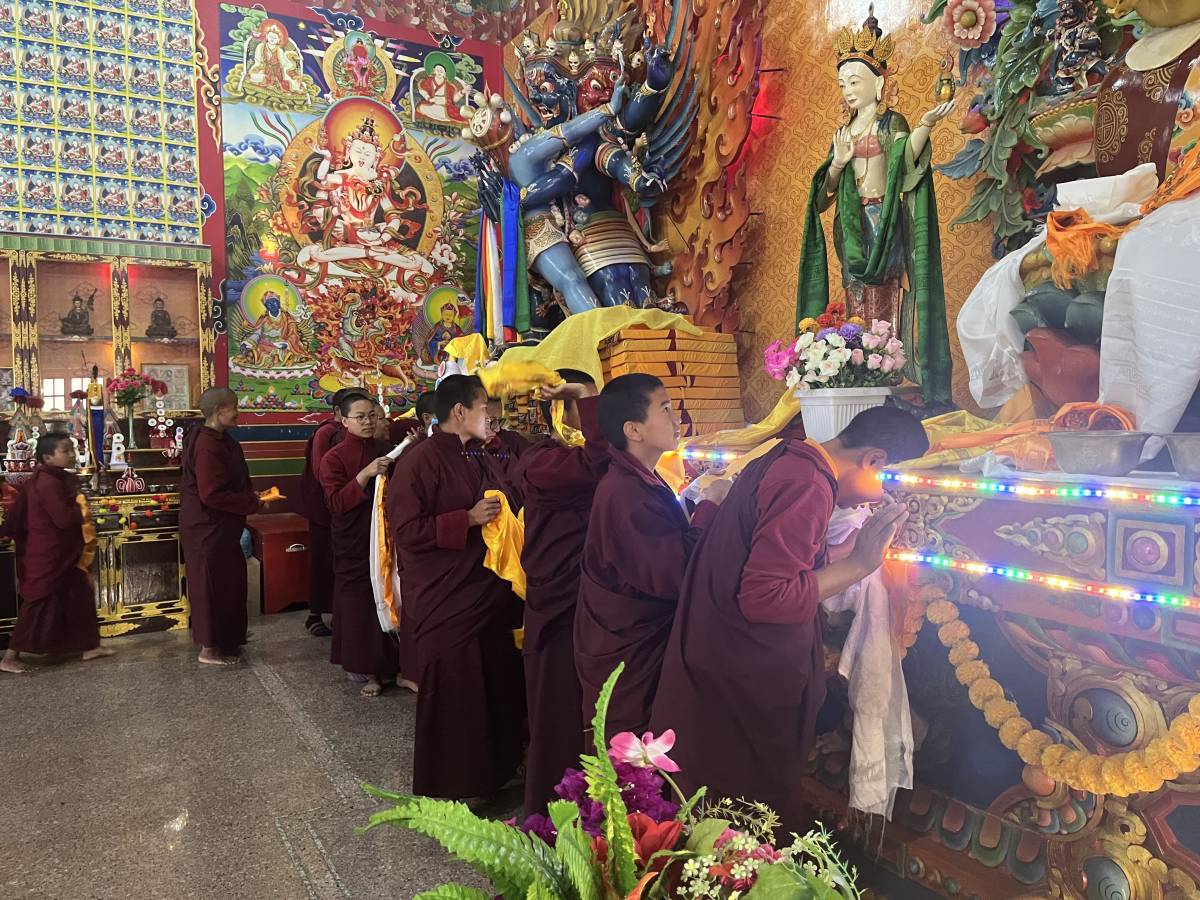 Das tibetische Wasser-Hase-Jahr begann am 21. Februar mit vielen Gebeten und Darreichungen von Khatags für Buddha Shakyamuni und Padmasambhava und dem Aufhängen neuer Gebetsfähnchen.