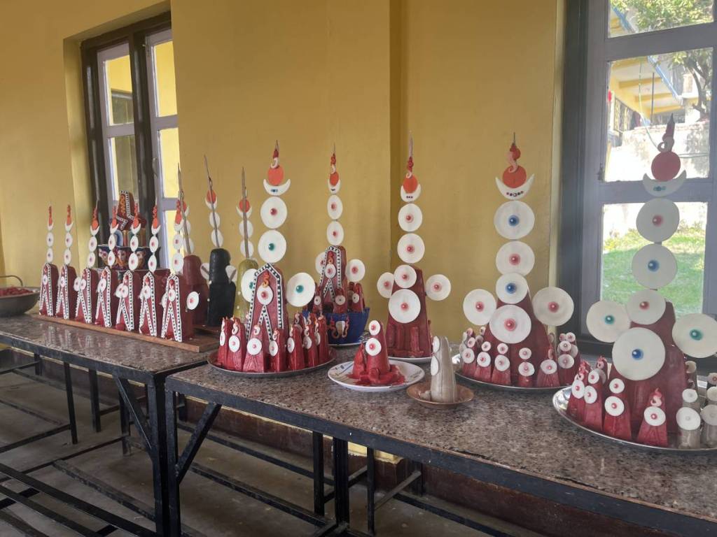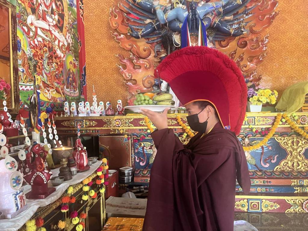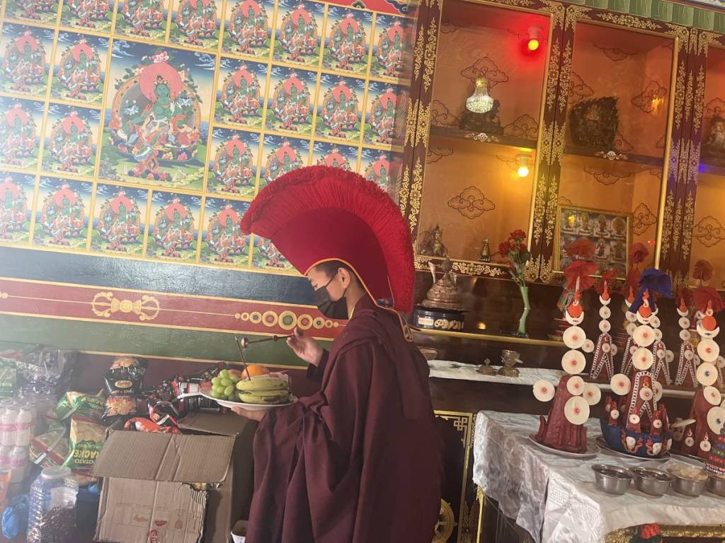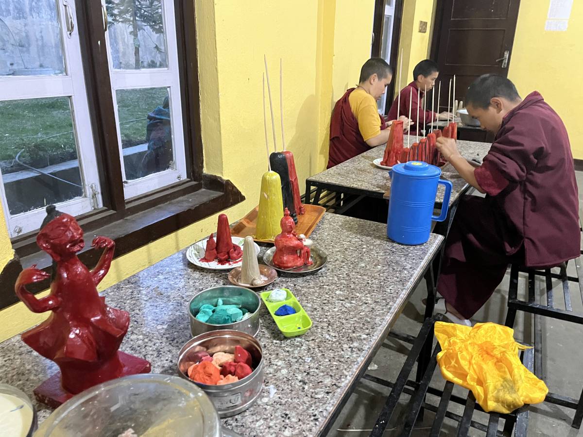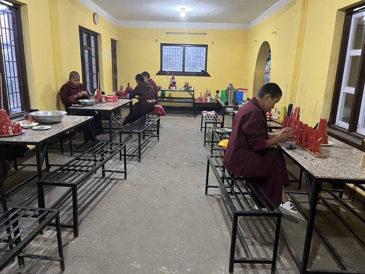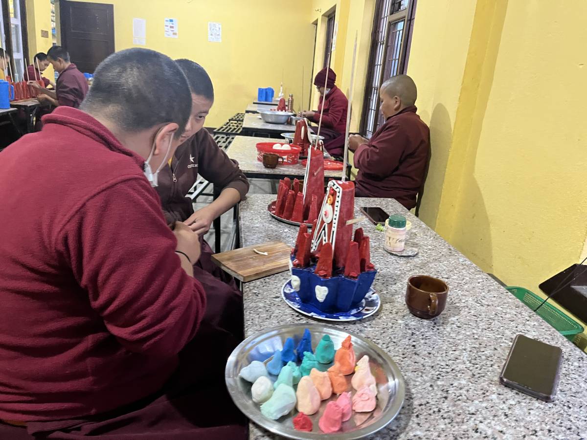 Ein weiterer Höhepunkt ist die Mahakala Puja. Die Nonnen fertigen die Tormas, die Opfergaben für die Rituale, selbst hauptsächlich aus Mehl und Butter.