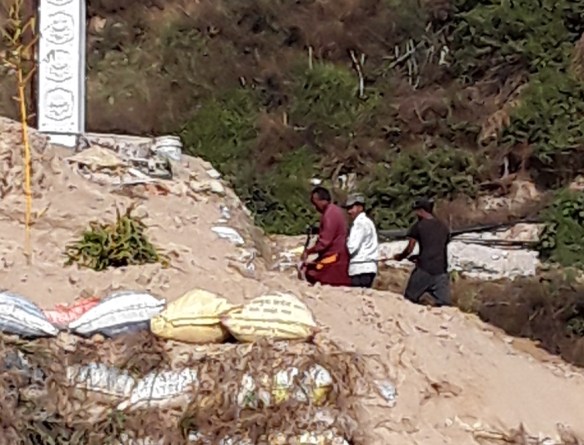Sie führten mich in dem Kloster herum, und ich durfte auch die Baustelle für die neu gebauten Apartments besuchen. Insgesamt hat mich dieses Projekt und vor allem auch die Persönlichkeit der beiden sehr überzeugt, und ich war gerührt und berührt von der Arbeit, die dort geleistet wird. Nach einer Weile verabschiedete sich Lama Gondup mit der Entschuldigung, dass er noch arbeiten müsse… Und später sah ich ihn am Hang des Klosters mit einer Spitzhacke zusammen mit Bauarbeitern die Erde beackern… Ein Bild, das für sich spricht.
