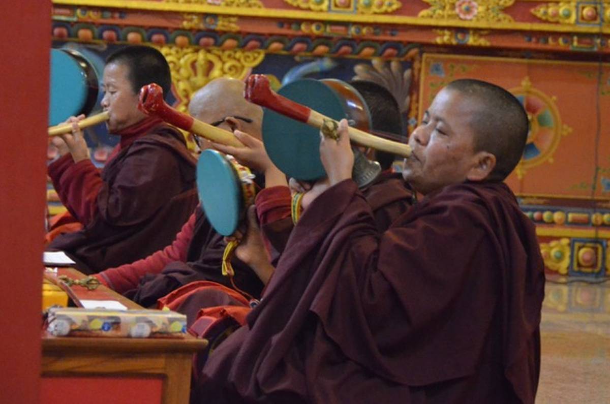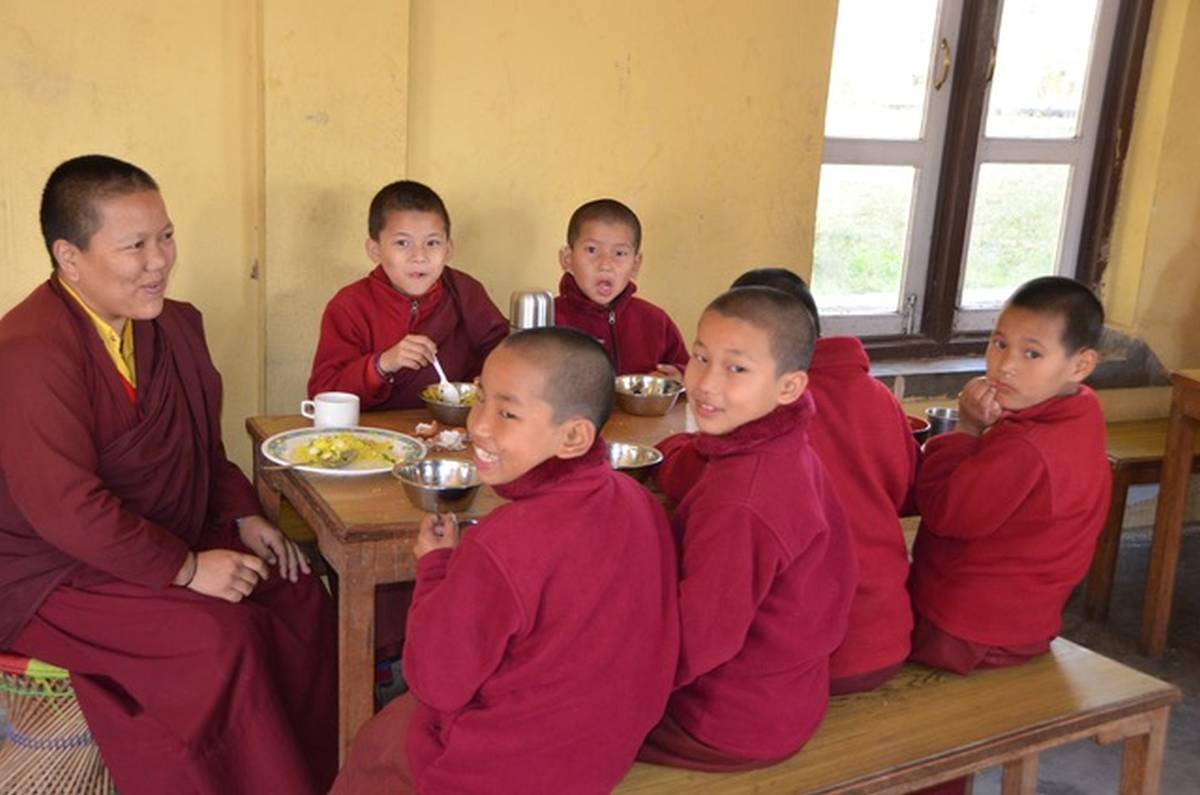 Der Tagesablauf der neunundfünfzig Nonnen im Alter von 5 bis 78 Jahren ist von Disziplin, Zusammenhalt, Eifer und Freude geprägt. Zwischen dem Wecken des Gongs um 4.45 Uhr und der Schlafenszeit um 22.00 Uhr liegen 7 Stunden Unterricht, morgens in tibetisch, nepalisch und buddhistischer Philosophie. Nach der Mittagspause unterrichten unsere fünf jungen und engagierten Lehrerinnen Mathematik, Englisch, Natur- und Sozialwissenschaften. Drei Pujas am Tag und natürlich das Essen – für die Jüngeren gemeinsam im Speisesaal, für die älteren Nonnen in deren Zimmer oder draußen – Respekt! Freizeit gibt’s nur am Sonntag. Denn samstags ist nach dem Vormittagsunterricht Waschen, Putzen und Aufräumen angesagt.
