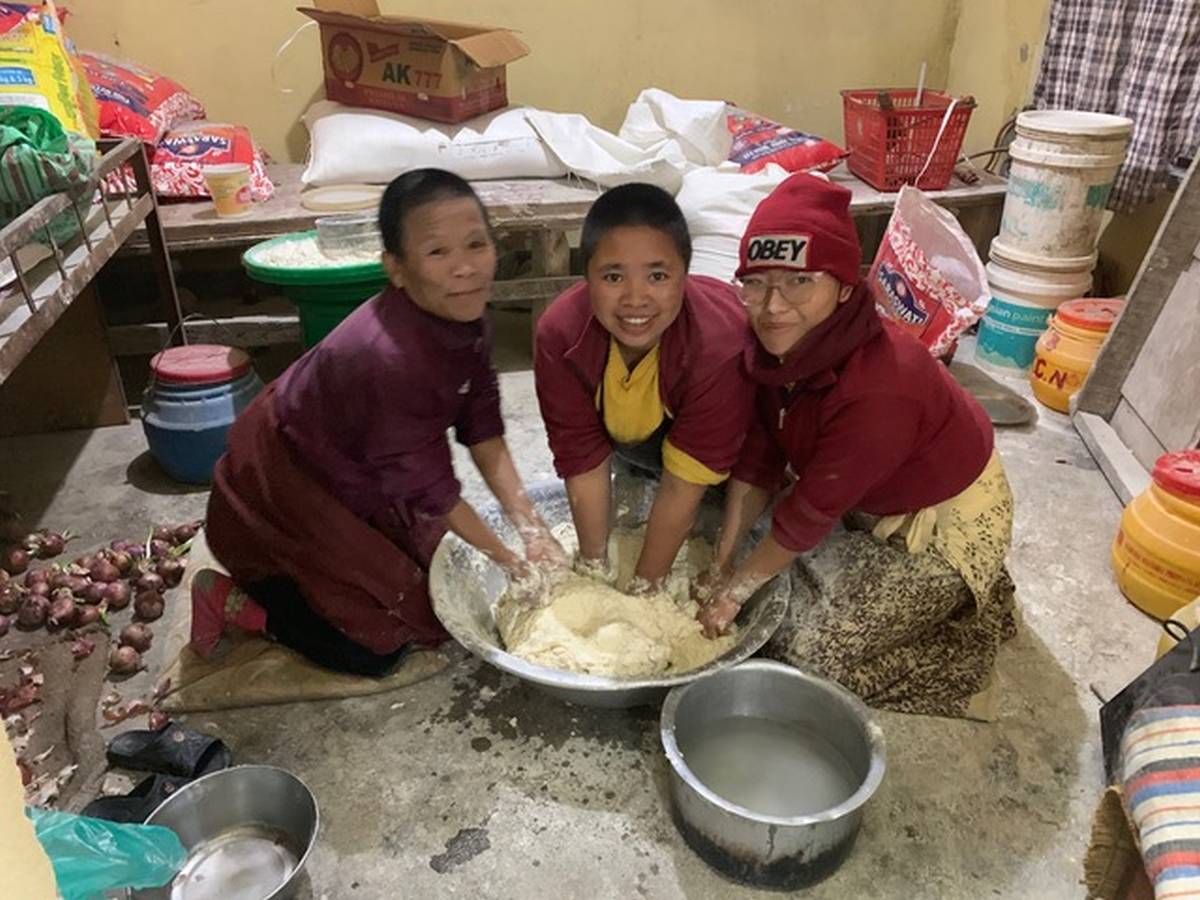 Nachdem wir uns die ersten 3 Tage in Boudhanath akklimatisiert hatten (was für ein Erlebnis morgens um 6 Uhr – einmal, zweimal, dreimal… die Stupa zu umrunden), wurden wir von Khenpo abgeholt und durften mehrere Tage im Kloster am Leben der Nonnen teilnehmen.